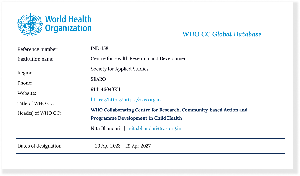 We are designated as a WHO Collaborating Centre for Research, Community-based Action and Programme Development in Child Health.